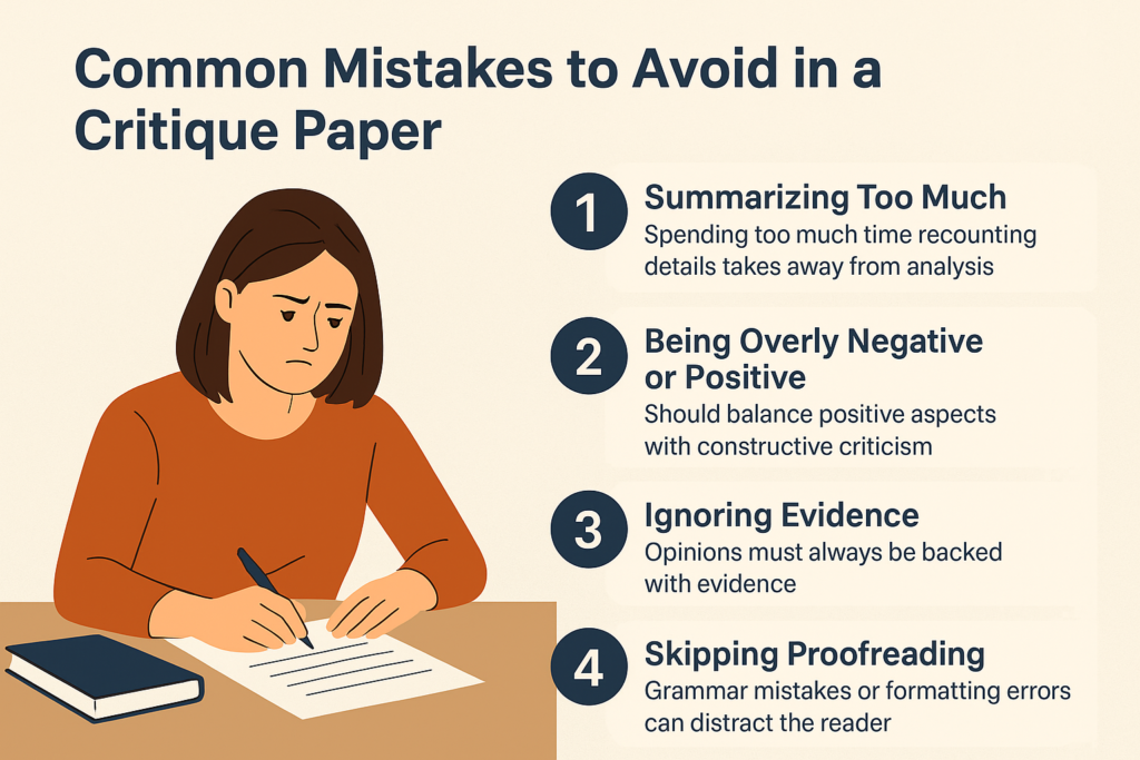 Many students struggle with critique papers because they confuse them with summaries or opinion pieces. A critique paper is not just about retelling the content—it is about analyzing, evaluating, and providing evidence-based insights. Below are some common mistakes to avoid when writing one: