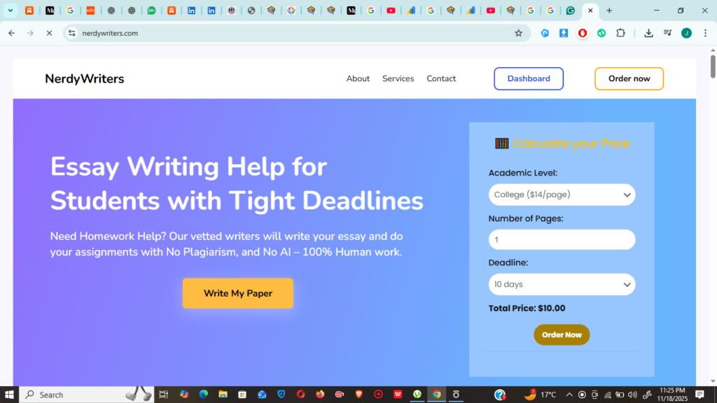 Nerdy Writers is known for affordability without compromising quality. Students trust them for consistent, polished writing.