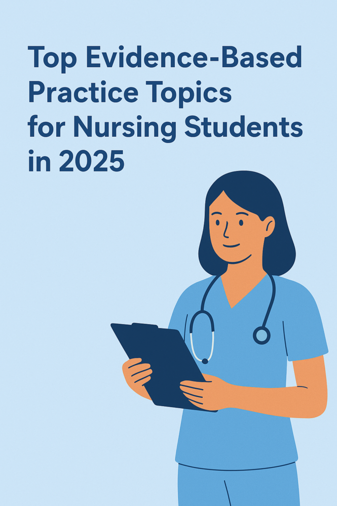 This blog explores the Top Evidence-Based Practice Topics for Nursing Students in 2025, offering a clear guide for choosing impactful research ideas for assignments, capstone projects, PICOT questions, and clinical applications. Whether you are preparing for academic work or aiming to improve your practical skills, these EBP topics will help you stay relevant, knowledgeable, and well-prepared for the future of nursing.