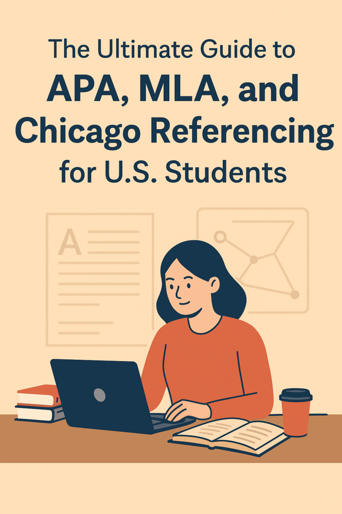 In conclusion, mastering APA, MLA, and Chicago referencing styles is an essential step for U.S. students who want to succeed in academic writing. These citation systems may differ in their rules, but they all share the same core purpose: giving proper credit to authors, strengthening your credibility, and safeguarding your work against plagiarism. For instance, APA emphasizes the author-date format widely used in the social sciences, MLA focuses on the author-page style common in the humanities, and Chicago offers both notes and bibliography or author-date systems, making it versatile for disciplines like history and business.